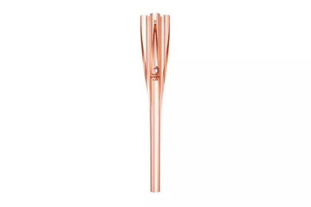 長(zhǎng)71公分,重達(dá)1.2公斤的火炬,從上方看便能見(jiàn)著優(yōu)雅的櫻花形狀,在顏色上,也特別融入粉嫩的櫻花色與金色,成為特殊「櫻花金」色系。